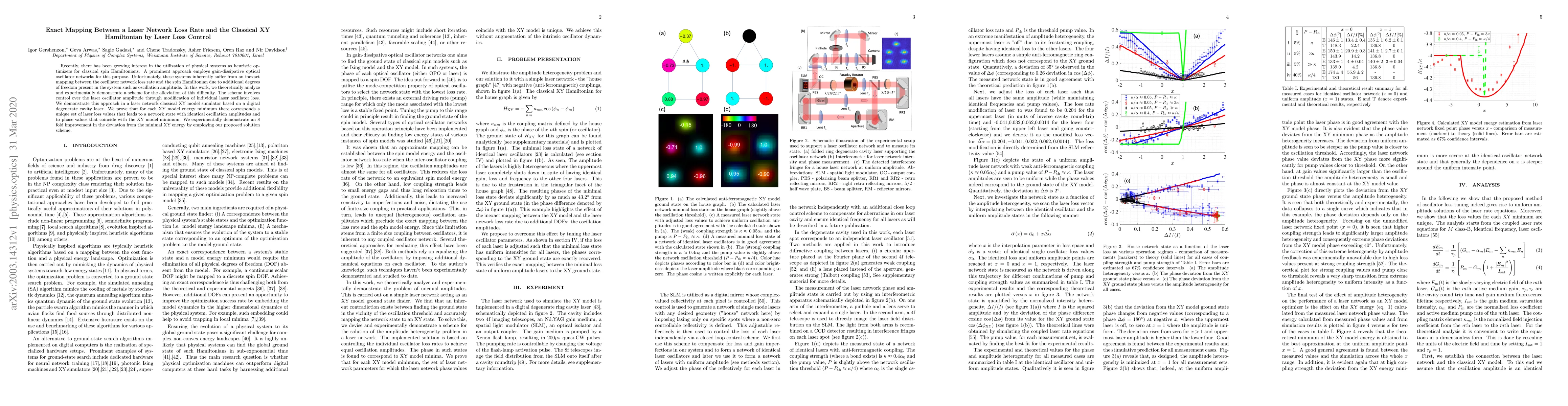 This paper proposes a method to achieve an exact mapping between a laser network loss rate and the classical XY Hamiltonian by controlling laser oscillator amplitudes through individual loss modifications. Experimentally, it demonstrates an 8-fold improvement in minimizing deviations from the XY model's minimal energy.