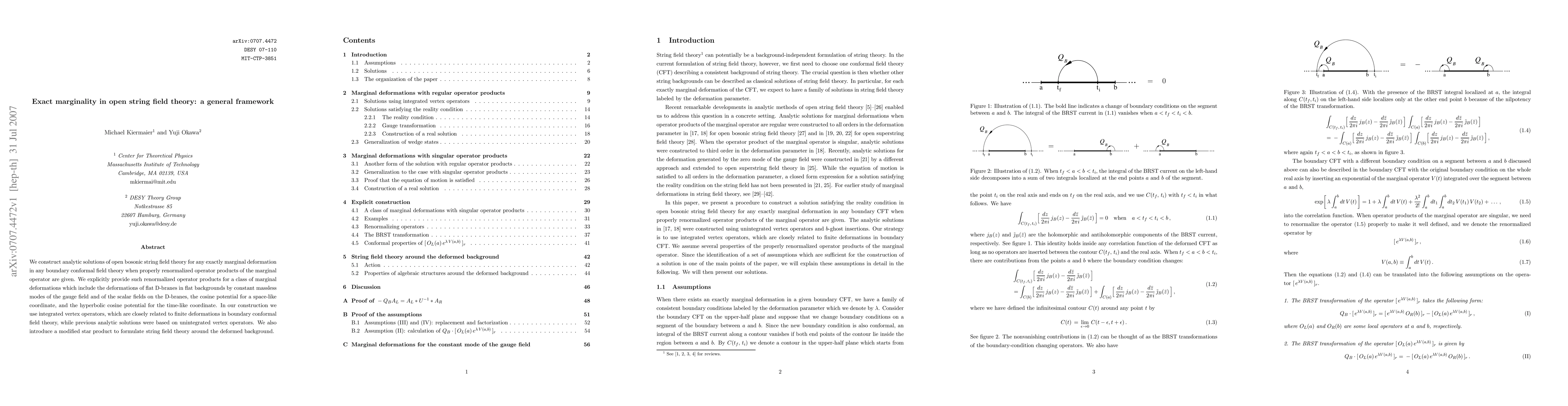 This paper presents a new framework for constructing analytic solutions in open bosonic string field theory for exactly marginal deformations, using integrated vertex operators and a modified star product. It provides renormalized operator products for specific marginal deformations, including those of flat D-branes and various potential deformations.