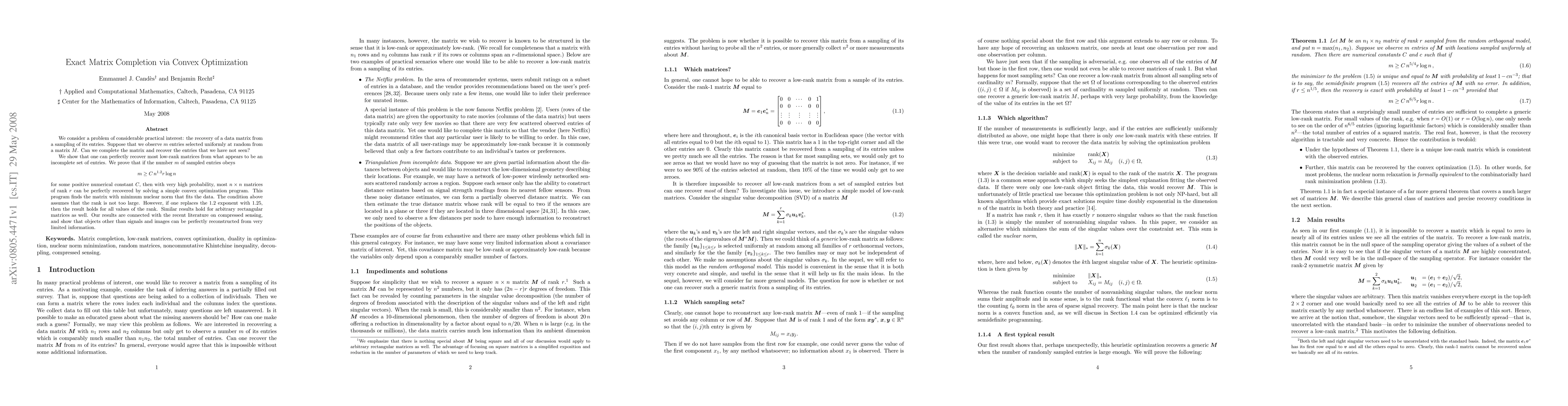 Researchers developed a method to recover low-rank matrices from incomplete data using convex optimization. With sufficient samples, the method can perfectly reconstruct most matrices of rank r with high probability.