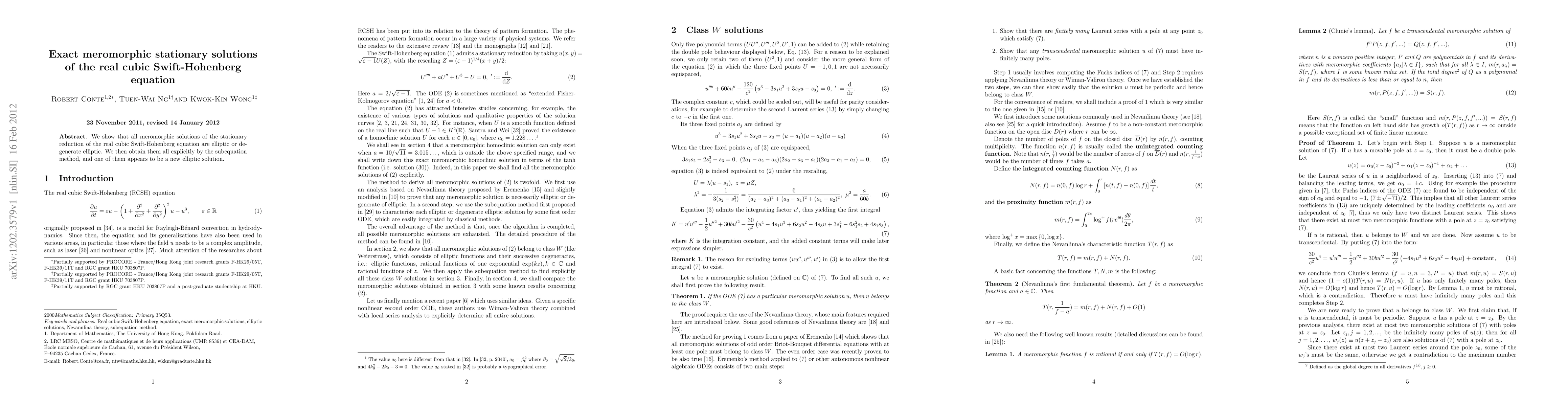Summary: The paper demonstrates that stationary meromorphic solutions of the real cubic Swift-Hohenberg equation are either elliptic or degenerate elliptic, and it explicitly derives these solutions using the subequation method, identifying a new elliptic solution in the process.