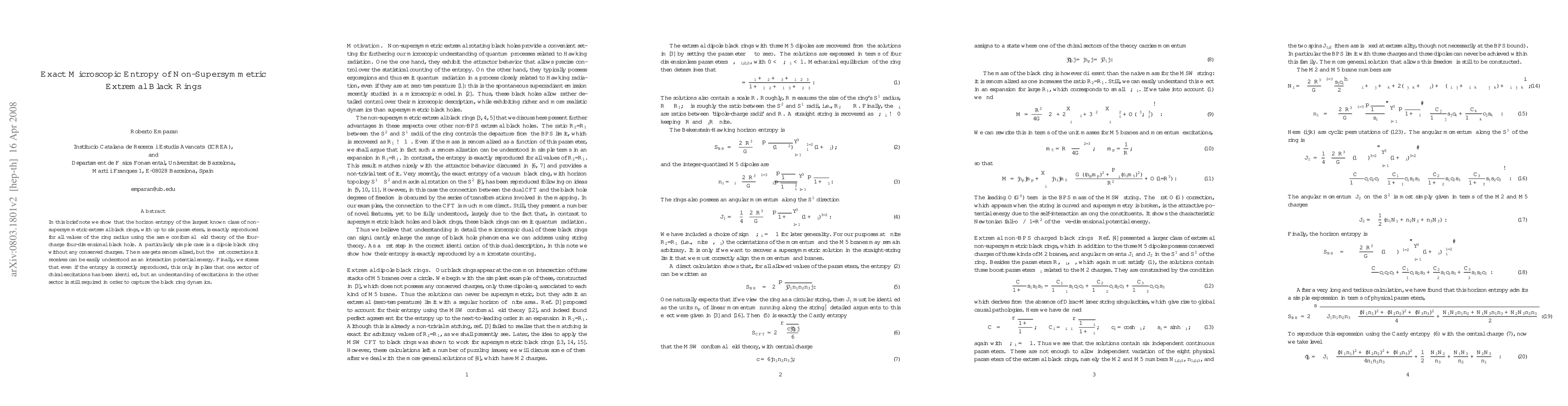In this brief note we show that the horizon entropy of the largest known class of non-supersymmetric extremal black rings, with up to six parameters, is exactly reproduced for all values of the ring radius using the same conformal field theory of the four-charge four-dimensional black hole. A particularly simple case is a dipole black ring without any conserved charges. The mass gets renormalized, but the first corrections it receives can be easily understood as an interaction potential energy. Finally, we stress that even if the entropy is correctly reproduced, this only implies that one sector of chiral excitations has been identified, but an understanding of excitations in the other sector is still required in order to capture the black ring dynamics.