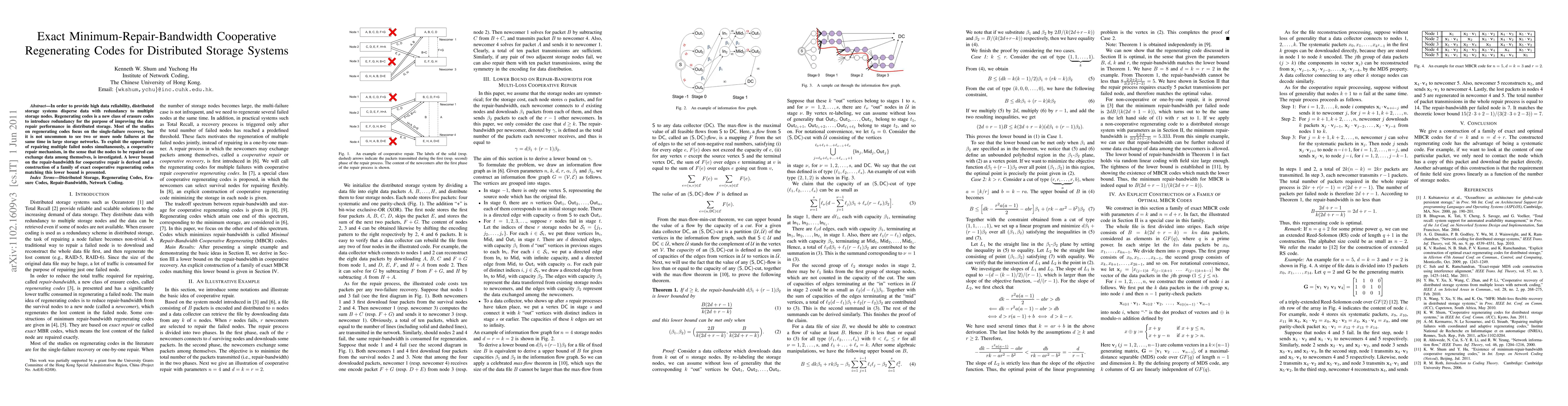 This paper proposes exact minimum-repair-bandwidth cooperative regenerating codes for distributed storage systems to enhance data reliability by repairing multiple failed nodes simultaneously. It derives a lower bound on repair-bandwidth and presents a construction of codes matching this bound.