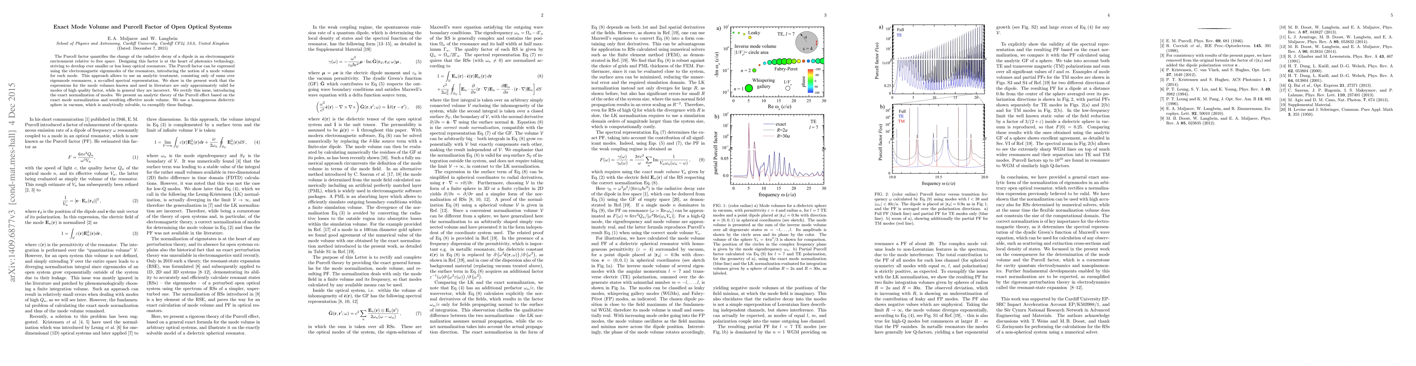 This paper corrects the approximations in calculating mode volumes for high-quality factor optical resonators, introducing exact normalization. It presents an analytic theory for the Purcell factor based on this new approach, exemplified using a homogeneous dielectric sphere in vacuum.