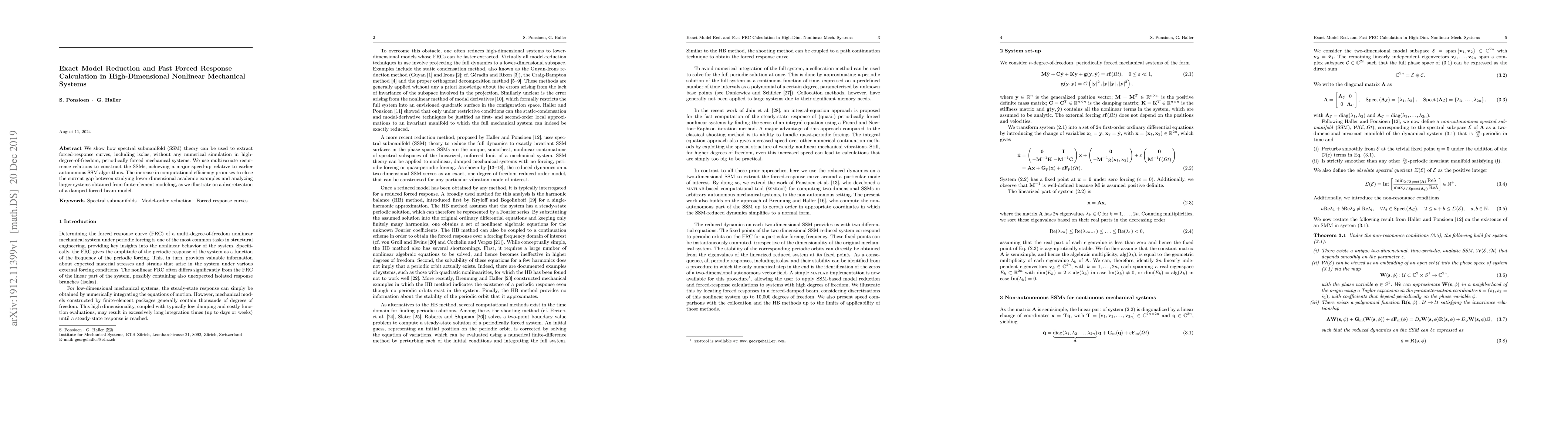 This paper demonstrates the use of spectral submanifold theory to efficiently extract forced-response curves in high-dimensional mechanical systems without simulation, employing multivariate recurrence relations to construct these submanifolds for significant speed improvements over previous methods. The approach is illustrated on a damped-forced beam model, showing potential for bridging the gap between academic and real-world system analyses.