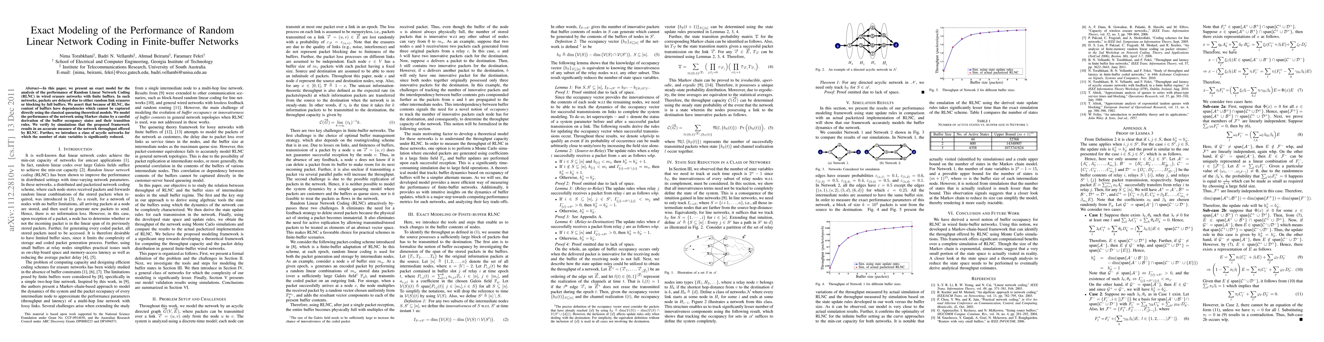In this paper, we present an exact model for the analysis of the performance of Random Linear Network Coding (RLNC) in wired erasure networks with finite buffers. In such networks, packets are delayed due to either random link erasures or blocking by full buffers. We assert that because of RLNC, the content of buffers have dependencies which cannot be captured directly using the classical queueing theoretical models. We model the performance of the network using Markov chains by a careful derivation of the buffer occupancy states and their transition rules. We verify by simulations that the proposed framework results in an accurate measure of the network throughput offered by RLNC. Further, we introduce a class of acyclic networks for which the number of state variables is significantly reduced.