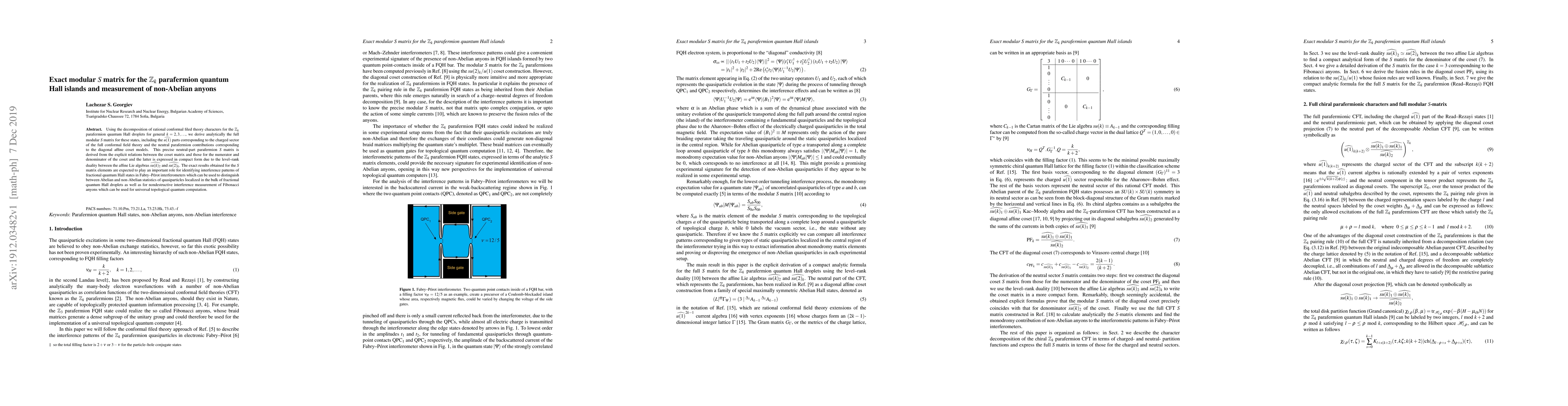 This paper analytically derives the exact modular $S$ matrix for ${\mathbb Z}_k$ parafermion quantum Hall droplets, providing insights into both Abelian and non-Abelian statistics of quasiparticles and facilitating nondestructive interference measurements of Fibonacci anyons for topological quantum computation.