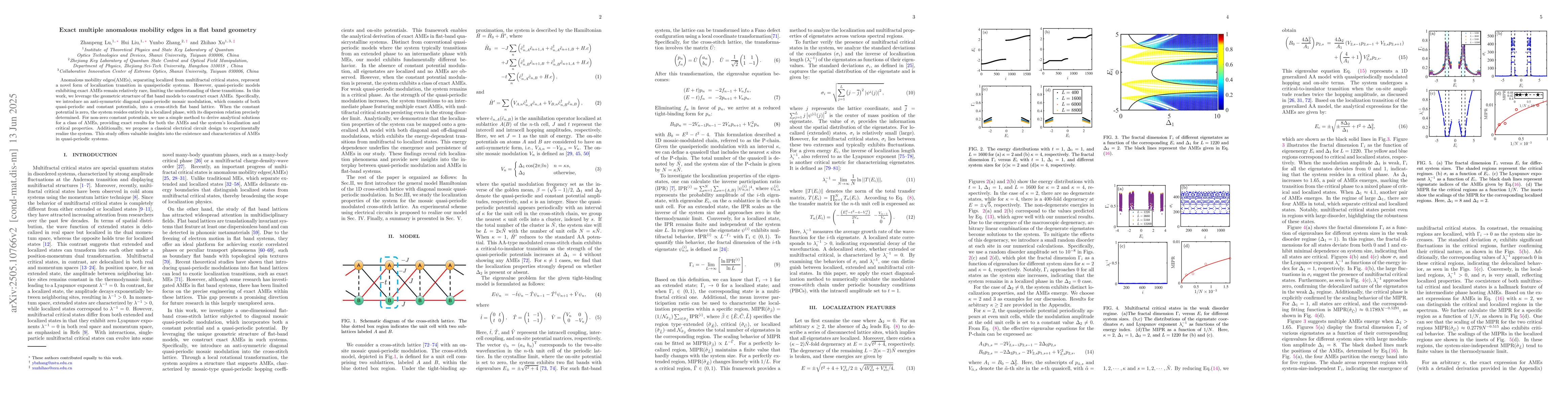 Development of a novel method to construct exact anomalous mobility edges in flat band geometries using quasi-periodic mosaic modulation and derivation of analytical solutions for these edges.