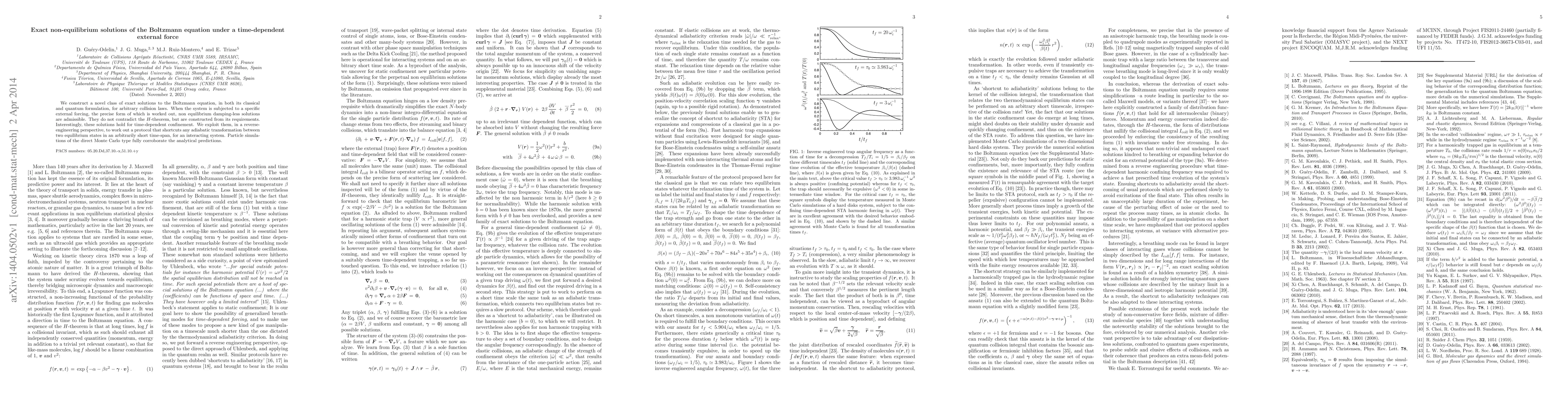 This paper presents exact non-equilibrium solutions to the Boltzmann equation under time-dependent external forces, demonstrating damping-less solutions that comply with the $H$-theorem. These solutions enable a protocol for adiabatic transformation shortcuts between equilibrium states, validated by direct Monte Carlo simulations.