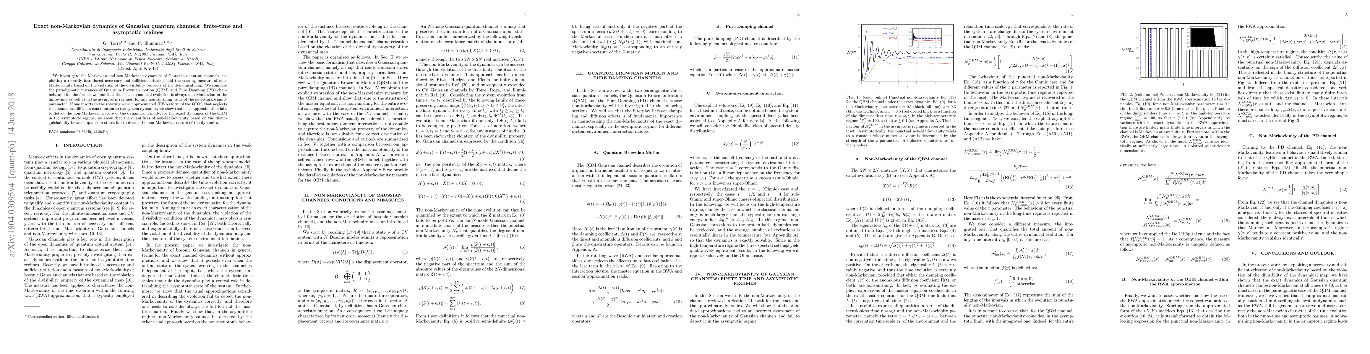 Research investigates non-Markovian dynamics of Gaussian quantum channels, finding exact evolution is always non-Markovian in finite-time and asymptotic regimes.