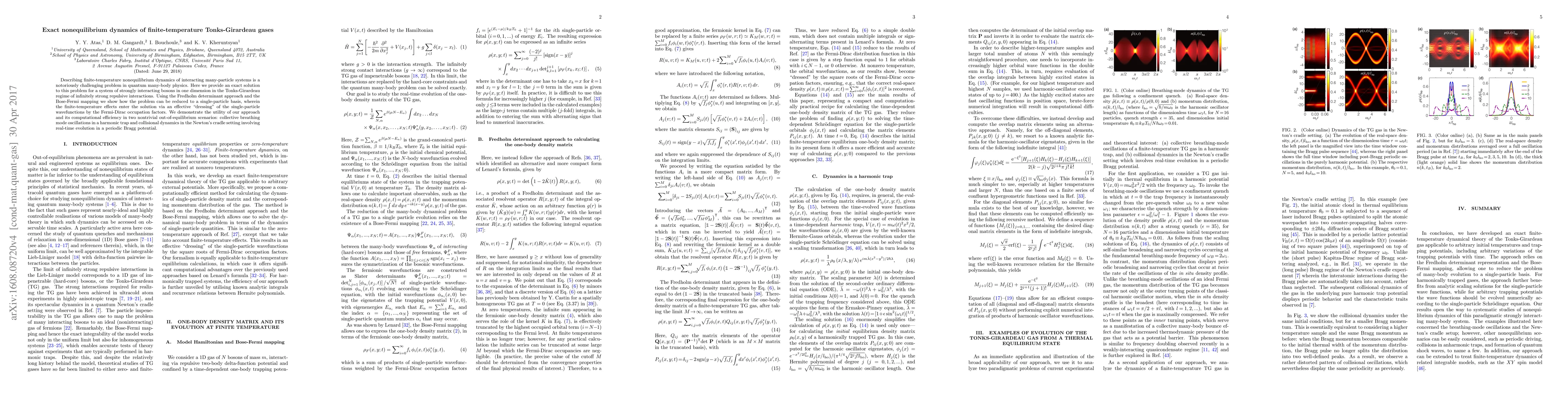 This paper presents an exact solution for the finite-temperature nonequilibrium dynamics of strongly interacting bosons in one dimension under Tonks-Girardeau conditions. The authors utilize the Fredholm determinant approach and Bose-Fermi mapping to simplify the problem, demonstrating computational efficiency in scenarios like collective oscillations and collisional dynamics.
