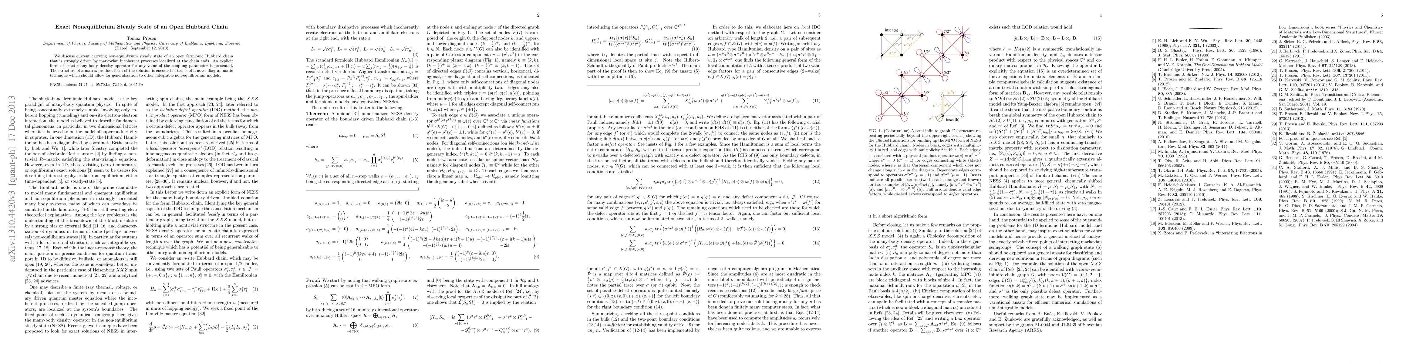 This paper presents an exact many-body density operator for a strongly driven open Hubbard chain in a nonequilibrium steady state, utilizing a novel diagrammatic technique to derive its matrix product form, which may be extended to other integrable nonequilibrium systems.