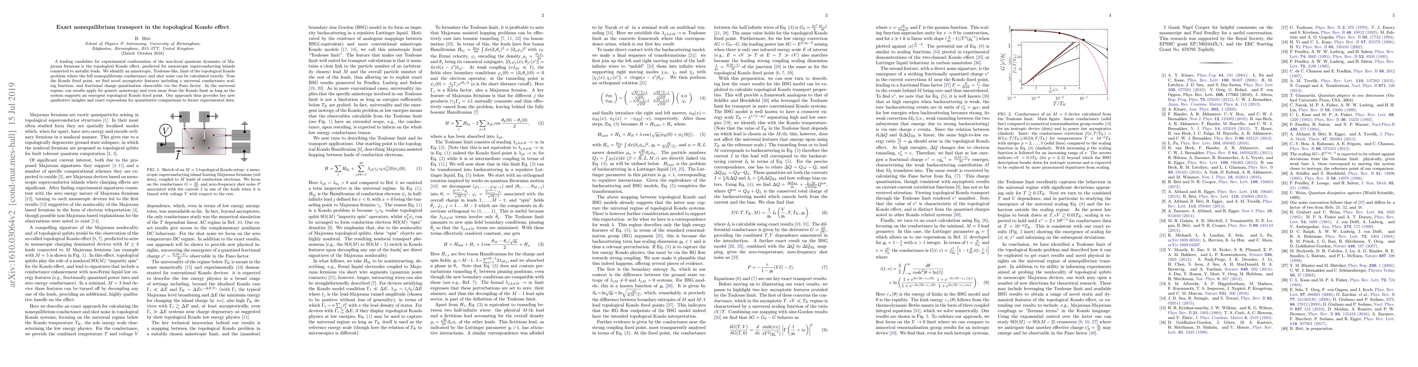 A leading candidate for experimental confirmation of the non-local quantum dynamics of Majorana fermions is the topological Kondo effect, predicted for mesoscopic superconducting islands connected to metallic leads. We identify an anisotropic, Toulouse-like, limit of the topological Kondo problem where the full nonequilibrium conductance and shot noise can be calculated exactly. Near the Kondo fixed point, we find novel asymptotic features including a universal conductance scaling function, and fractional charge quantisation observable via the Fano factor. In the universal regime, our results apply for generic anisotropy and even away from the Kondo limit as long as the system supports an emergent topological Kondo fixed point. Our approach thus provides key new qualitative insights and exact expressions for quantitative comparisons to future experimental data.