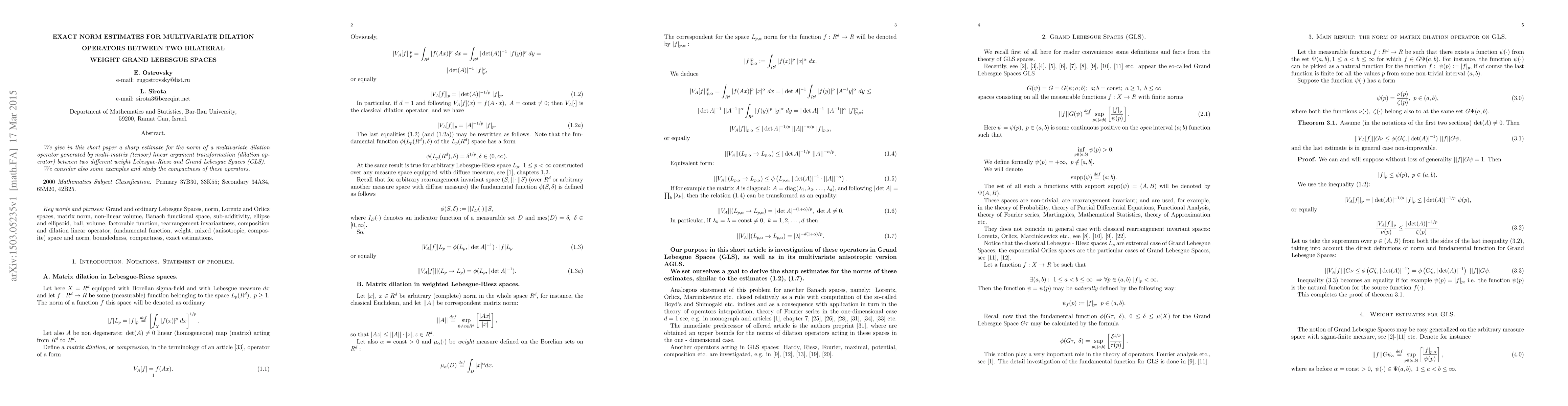 We give in this short paper a sharp estimate for the norm of a multivariate dilation operator generated by multi-matrix (tensor) linear argument transformation (dilation operator) between two different weight Lebesgue-Riesz and Grand Lebesgue Spaces(GLS). We consider also some examples and study the compactness of these operators.