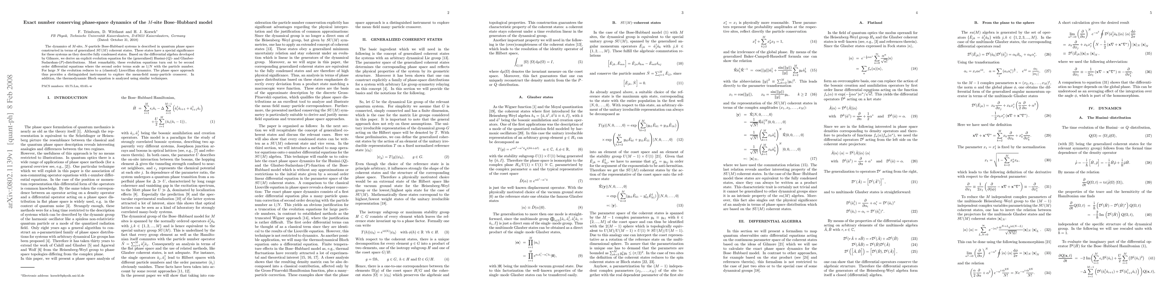The paper describes a new method to study the dynamics of M-site Bose-Hubbard systems using quantum phase space, finding that large particle numbers lead to classical-like behavior.