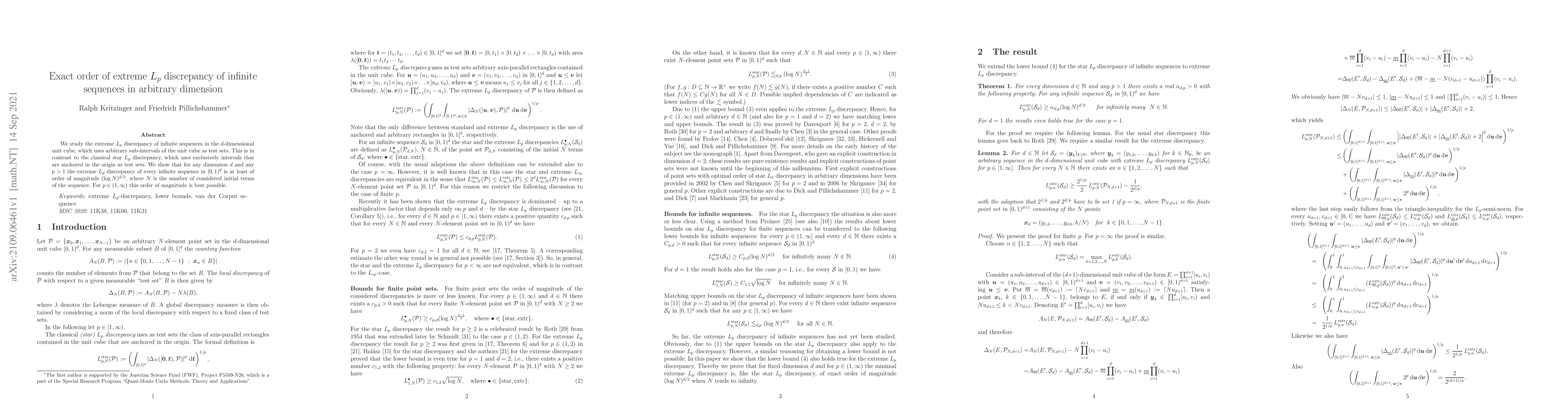 The study finds that for infinite sequences in d-dimensional space, the extreme L_p discrepancy is at least (log N)^(d/2), where N is the number of initial terms, and this order holds for p between 1 and infinity.