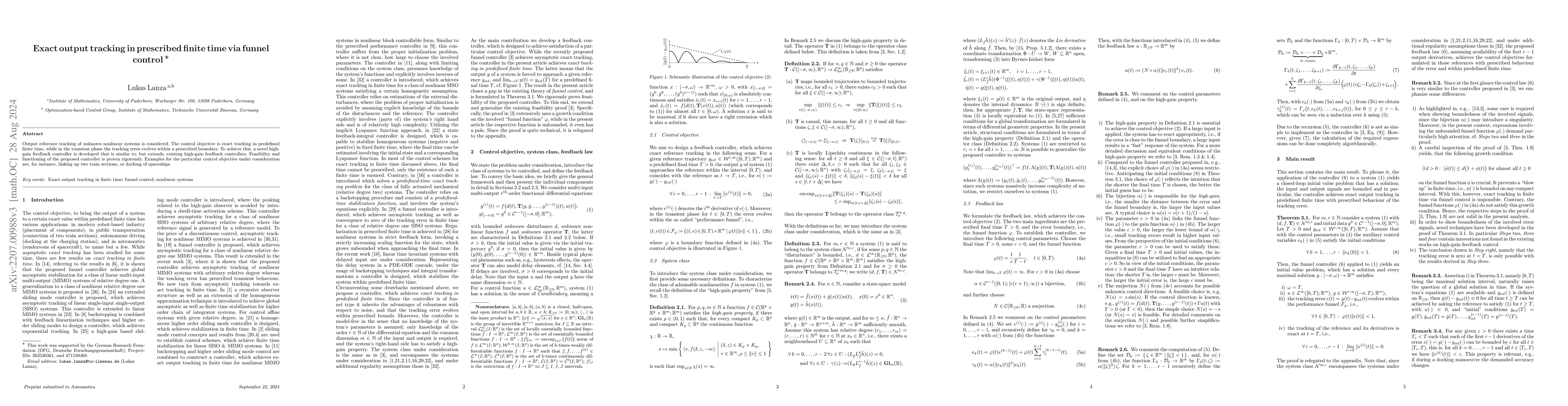 Output reference tracking of unknown nonlinear systems is considered. The control objective is exact tracking in predefined finite time, while in the transient phase the tracking error evolves within a prescribed boundary. To achieve this, a novel high-gain feedback controller is developed that is similar to, but extends, existing high-gain feedback controllers. Feasibility and functioning of the proposed controller is proven rigorously. Examples for the particular control objective under consideration are, for instance, linking up two train sections, or docking of spaceships.