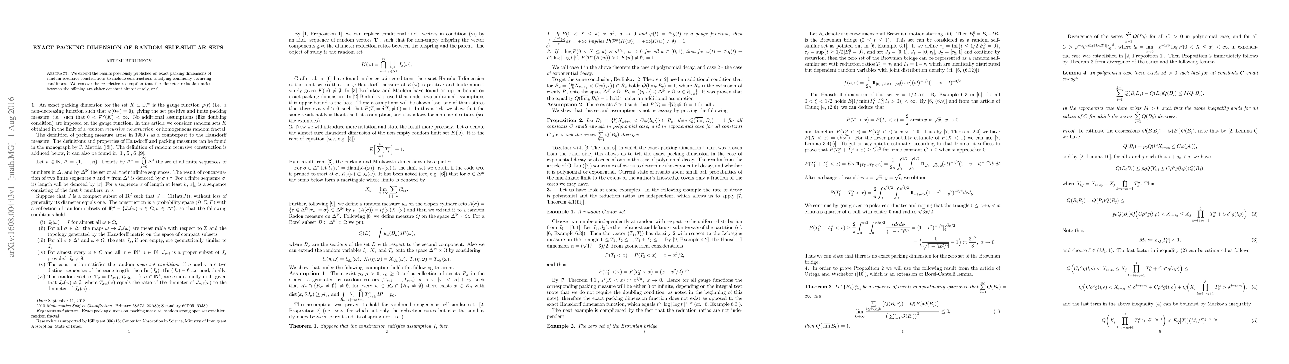 We extend the results previously published on exact packing dimensions of random recursive constructions to include constructions satisfying commonly occurring conditions. We remove the restrictive assumption that the diameter reduction ratios between the offsping are either constant almost surely, or 0.