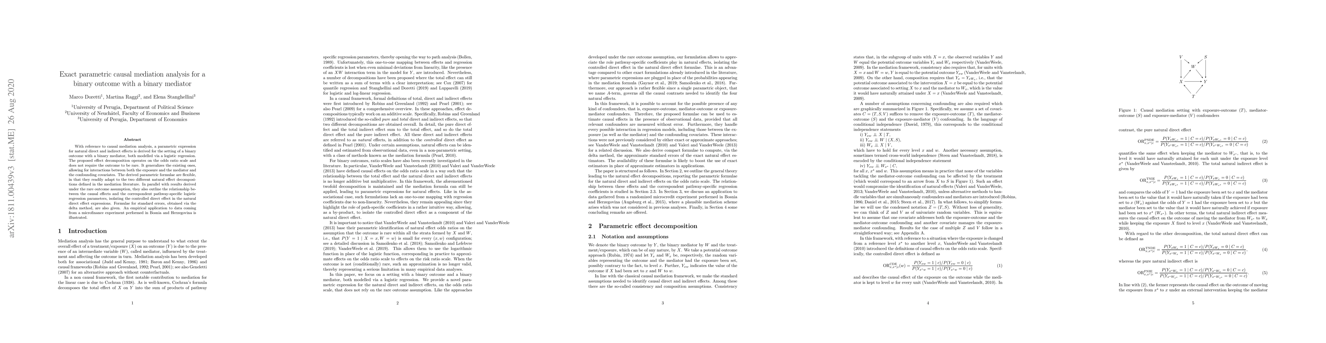This paper proposes a parametric causal mediation analysis for binary outcomes and mediators, allowing for interactions and confounders. It provides a new decomposition of direct and indirect effects, alongside standard error formulae, and compares its performance via simulation and a real-world microfinance experiment.