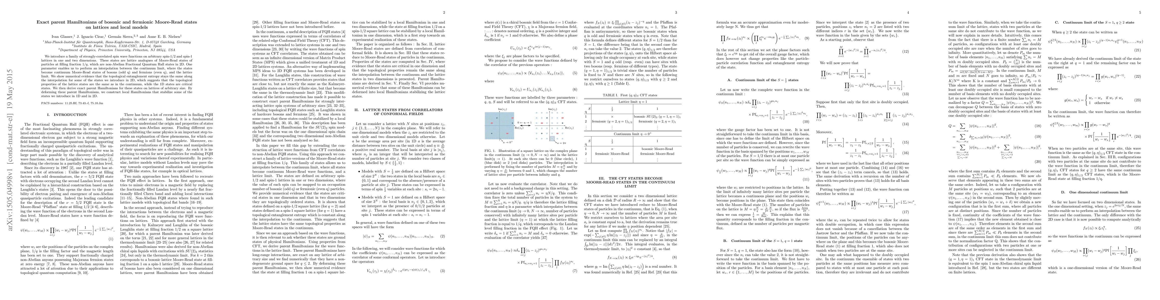 This paper introduces lattice analogues of Moore-Read states on spin-1/2 and spin-1 lattices, demonstrating that their topological entanglement entropy remains consistent across lattice and continuum limits. It derives exact parent Hamiltonians and constructs local models that stabilize these states.