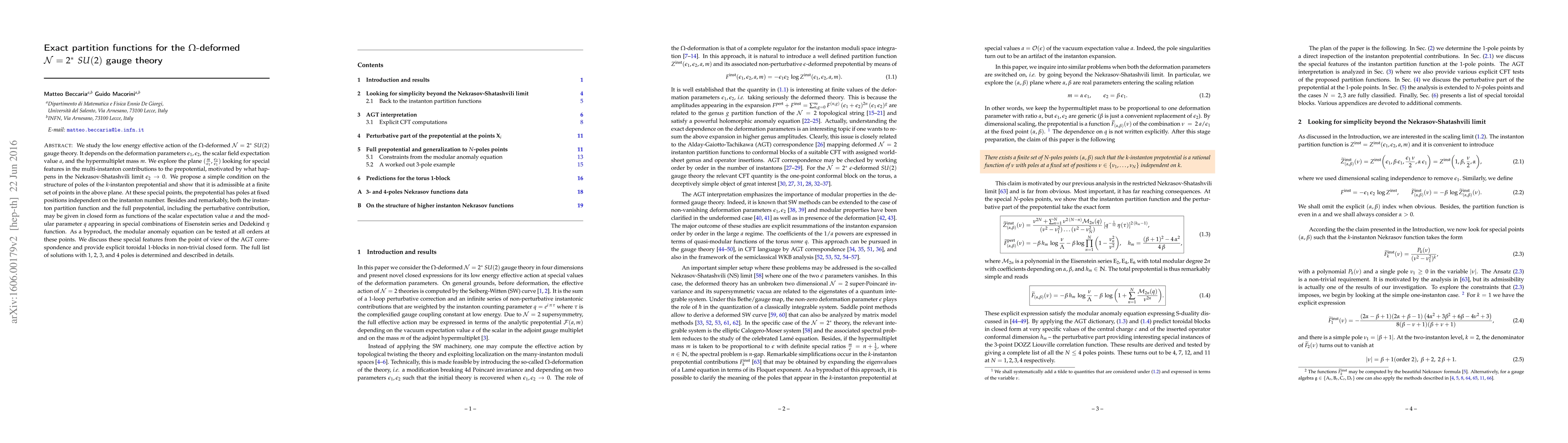 We study the low energy effective action of the $\Omega$-deformed $\mathcal N =2^{*}$ $SU(2) $ gauge theory. It depends on the deformation parameters $\epsilon_{1},\epsilon_{2}$, the scalar field expectation value $a$, and the hypermultiplet mass $m$. We explore the plane $(\frac{m}{\epsilon_{1}}, \frac{\epsilon_{2}}{\epsilon_{1}})$ looking for special features in the multi-instanton contributions to the prepotential, motivated by what happens in the Nekrasov-Shatashvili limit $\epsilon_{2}\to 0$. We propose a simple condition on the structure of poles of the $k$-instanton prepotential and show that it is admissible at a finite set of points in the above plane. At these special points, the prepotential has poles at fixed positions independent on the instanton number. Besides and remarkably, both the instanton partition function and the full prepotential, including the perturbative contribution, may be given in closed form as functions of the scalar expectation value $a$ and the modular parameter $q$ appearing in special combinations of Eisenstein series and Dedekind $\eta$ function. As a byproduct, the modular anomaly equation can be tested at all orders at these points. We discuss these special features from the point of view of the AGT correspondence and provide explicit toroidal 1-blocks in non-trivial closed form. The full list of solutions with 1, 2, 3, and 4 poles is determined and described in details.