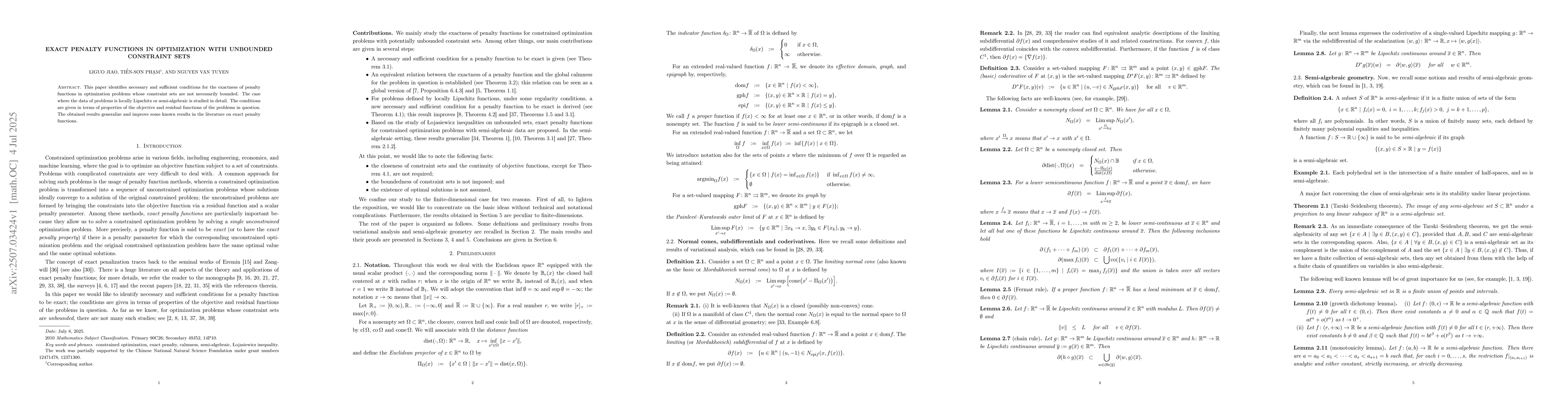 This paper identifies necessary and sufficient conditions for the exactness of penalty functions in optimization problems whose constraint sets are not necessarily bounded. The case where the data of problems is locally Lipschitz or semi-algebraic is studied in detail. The conditions are given in terms of properties of the objective and residual functions of the problems in question. The obtained results generalize and improve some known results in the literature on exact penalty functions.