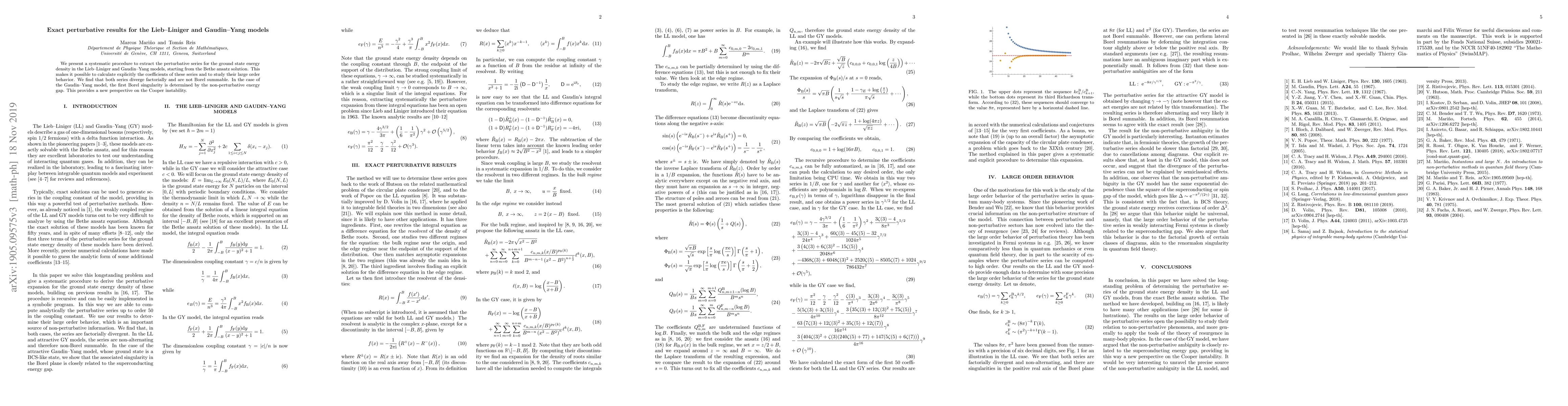 Summary: This research develops a method to derive perturbative series for ground state energy densities in the Lieb-Liniger and Gaudin-Yang models, revealing their factorial divergence and non-Borel summability. It identifies the first Borel singularity in the Gaudin-Yang model, linked to the non-perturbative energy gap, offering insight into the Cooper instability.