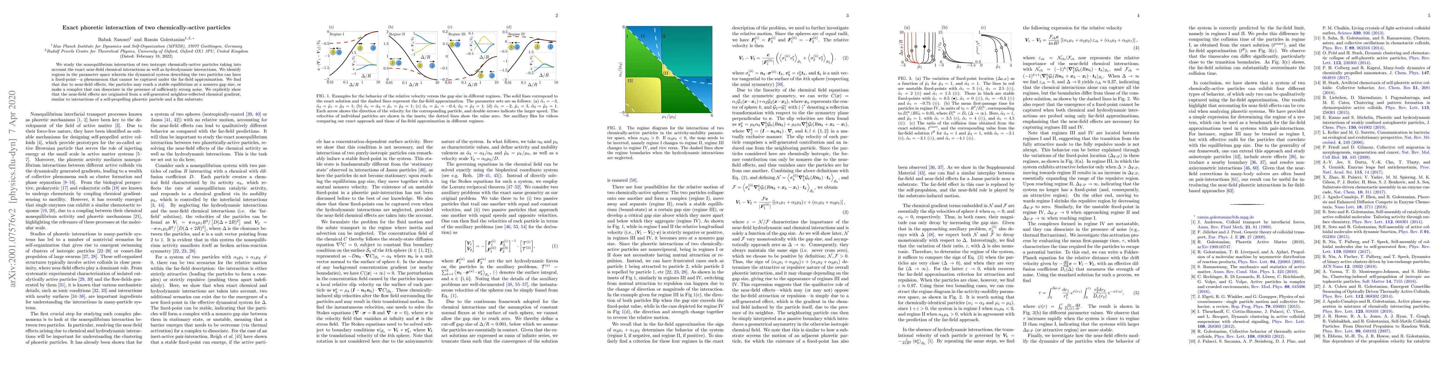This paper investigates the nonequilibrium interaction between two chemically-active particles, considering both near-field chemical and hydrodynamic effects. It reveals that near-field interactions can lead to stable equilibria at nonzero distances or complex formations that may dissociate under strong noise, phenomena not captured by far-field approximations.