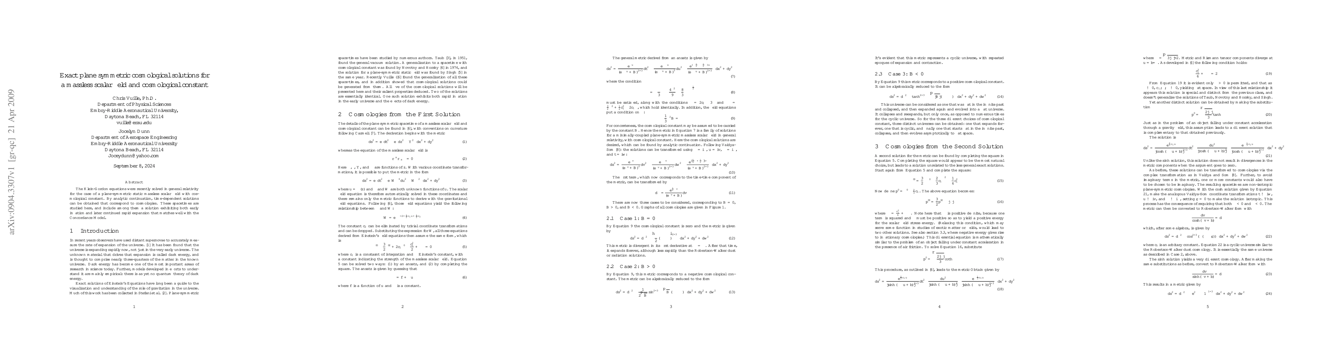 This research solves the Klein-Gordon equations in general relativity for plane-symmetric static massless scalar fields with a cosmological constant, deriving time-dependent solutions that model cosmological evolution, including early inflation that aligns with the Concordance Model.