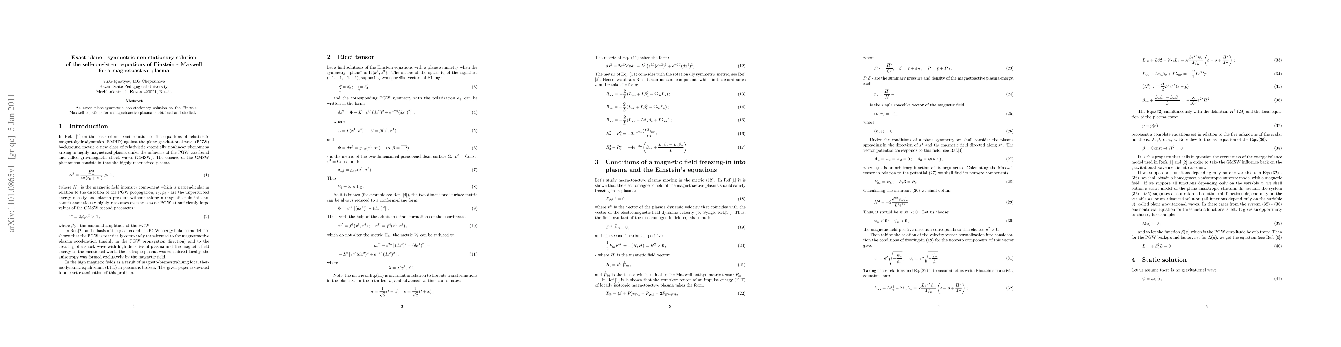 Summary: This paper presents an exact plane-symmetric non-stationary solution to the coupled Einstein-Maxwell equations describing magnetoactive plasma, providing insights into the dynamics of such plasma environments.