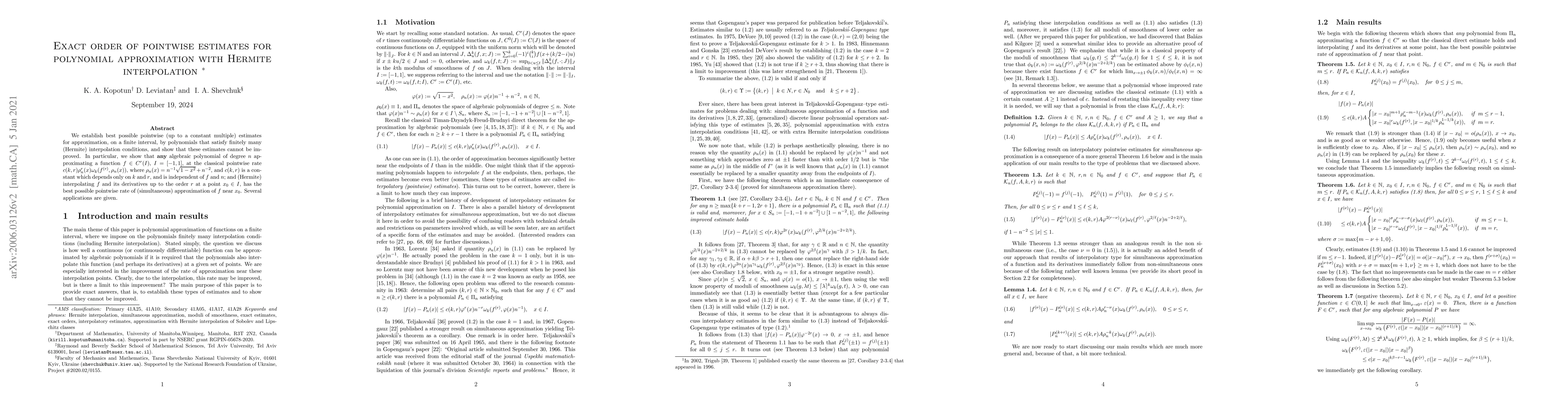 We establish best possible pointwise (up to a constant multiple) estimates for approximation, on a finite interval, by polynomials that satisfy finitely many (Hermite) interpolation conditions, and show that these estimates cannot be improved. In particular, we show that {\bf any} algebraic polynomial of degree $n$ approximating a function $f\in C^r(I)$, $I=[-1,1]$, at the classical pointwise rate $\rho_n^r(x) \omega_k(f^{(r)}, \rho_n(x))$, where $\rho_n(x)=n^{-1}\sqrt{1-x^2}+n^{-2}$, and (Hermite) interpolating $f$ and its derivatives up to the order $r$ at a point $x_0\in I$, has the best possible pointwise rate of (simultaneous) approximation of $f$ near $x_0$. Several applications are given.