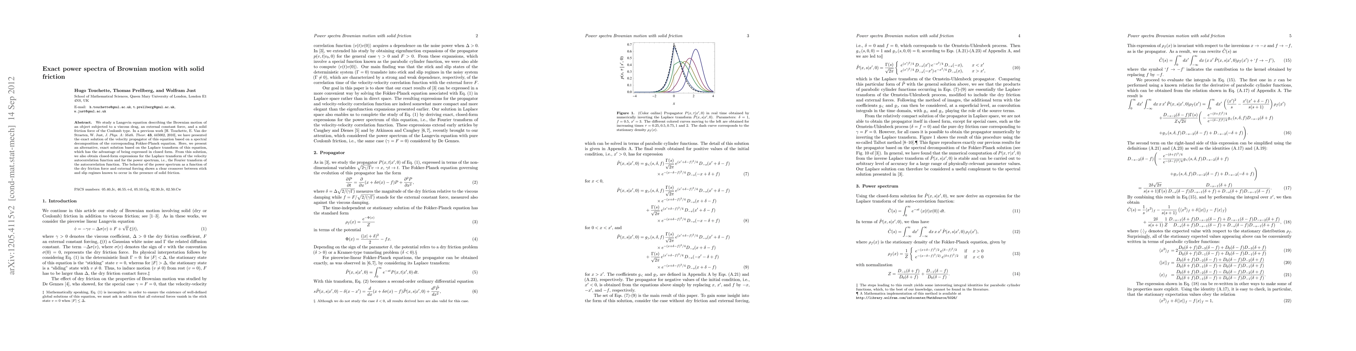 Researchers study Brownian motion with solid friction, finding a new exact solution that predicts a clear crossover between stick and slip regimes as the dry friction force increases.