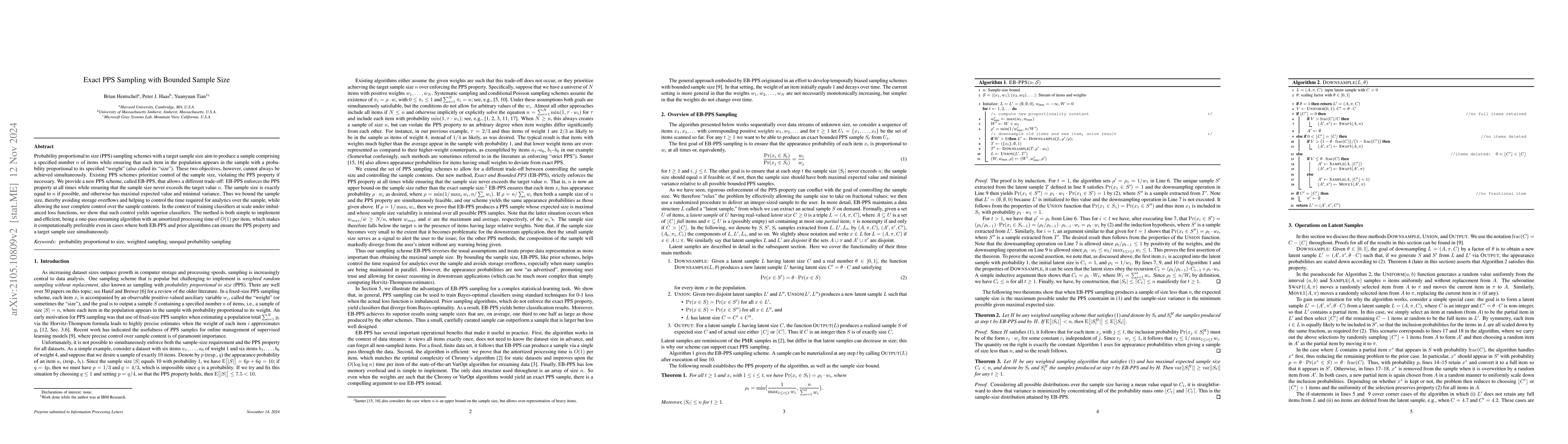 Probability proportional to size (PPS) sampling schemes with a target sample size aim to produce a sample comprising a specified number $n$ of items while ensuring that each item in the population appears in the sample with a probability proportional to its specified "weight" (also called its "size"). These two objectives, however, cannot always be achieved simultaneously. Existing PPS schemes prioritize control of the sample size, violating the PPS property if necessary. We provide a new PPS scheme that allows a different trade-off: our method enforces the PPS property at all times while ensuring that the sample size never exceeds the target value $n$. The sample size is exactly equal to $n$ if possible, and otherwise has maximal expected value and minimal variance. Thus we bound the sample size, thereby avoiding storage overflows and helping to control the time required for analytics over the sample, while allowing the user complete control over the sample contents. The method is both simple to implement and efficient, being a one-pass streaming algorithm with an amortized processing time of $O(1)$ per item.