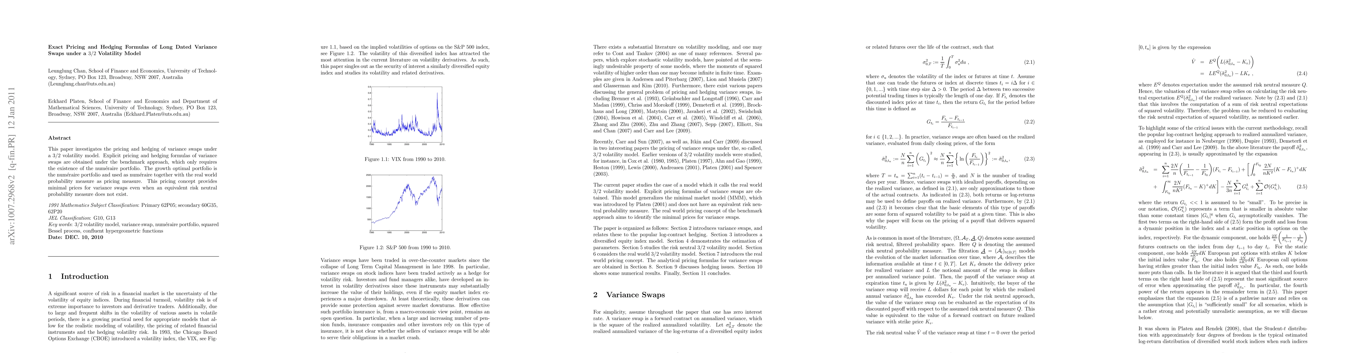 This paper derives exact pricing and hedging formulas for long-dated variance swaps using a $3/2$ volatility model. It leverages the benchmark approach with the growth optimal portfolio as the numéraire to provide minimal prices even in the absence of an equivalent risk-neutral measure.