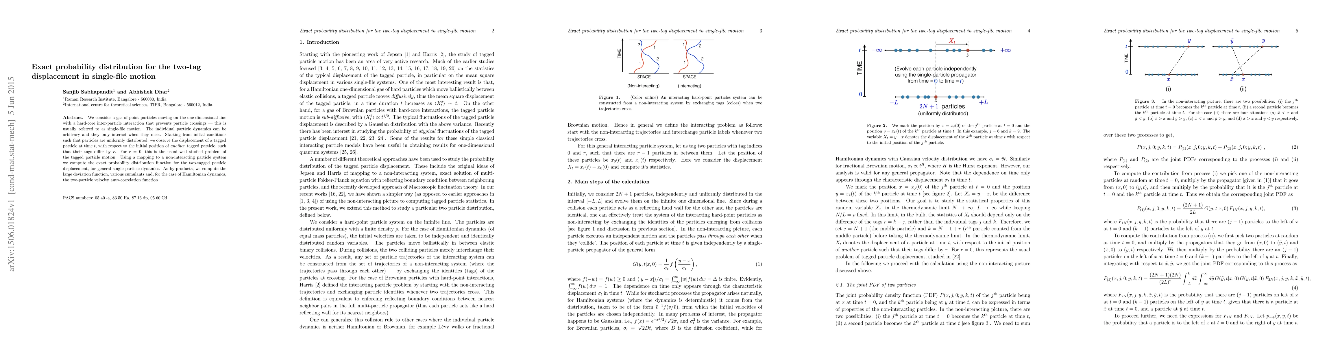 Researchers developed an exact probability distribution for the displacement of two particles in a one-dimensional line with hard-core interaction, enabling insights into single-file motion dynamics. The findings provide a new understanding of tagged particle motion and its statistical properties.
