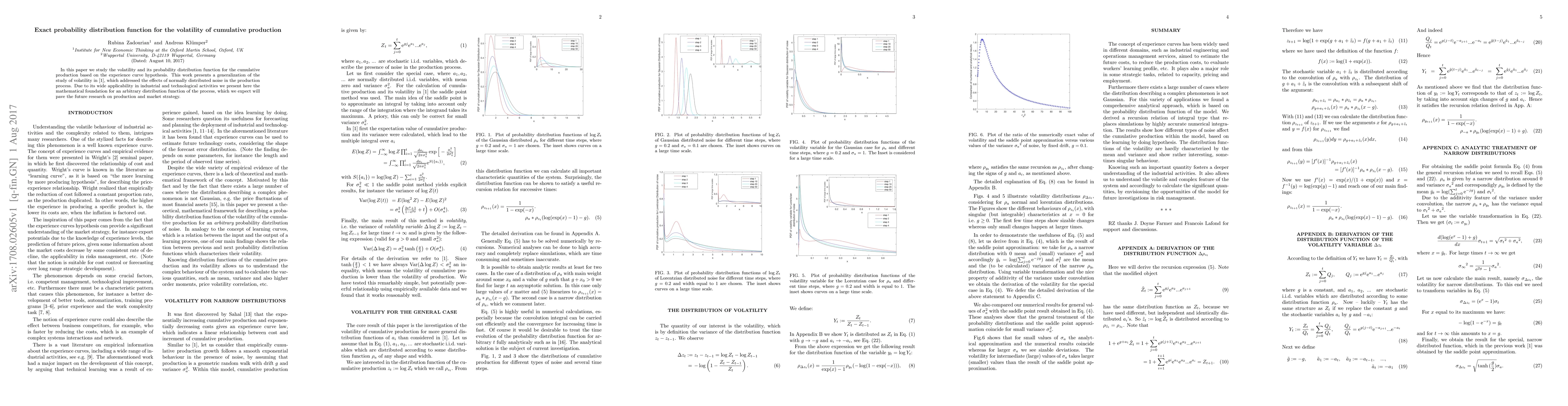This paper generalizes the study of volatility in cumulative production, presenting a mathematical foundation for an arbitrary distribution function based on the experience curve hypothesis, extending beyond normally distributed noise to broader applicability in industrial and technological activities. The work aims to pave the way for future research on production and market strategy.