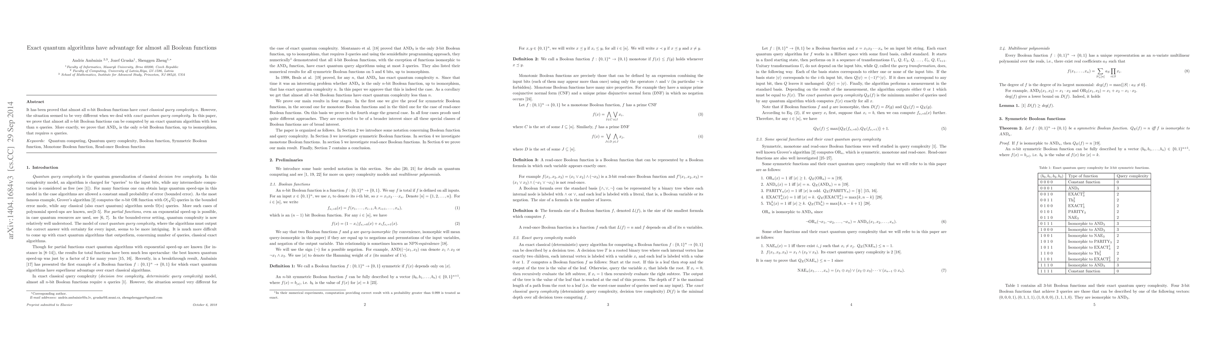 This paper demonstrates that almost all $n$-bit Boolean functions can be computed using exact quantum algorithms with fewer than $n$ queries, contrasting with their classical counterparts. It specifically proves that only the ${AND}_n$ function requires $n$ queries in the quantum setting.