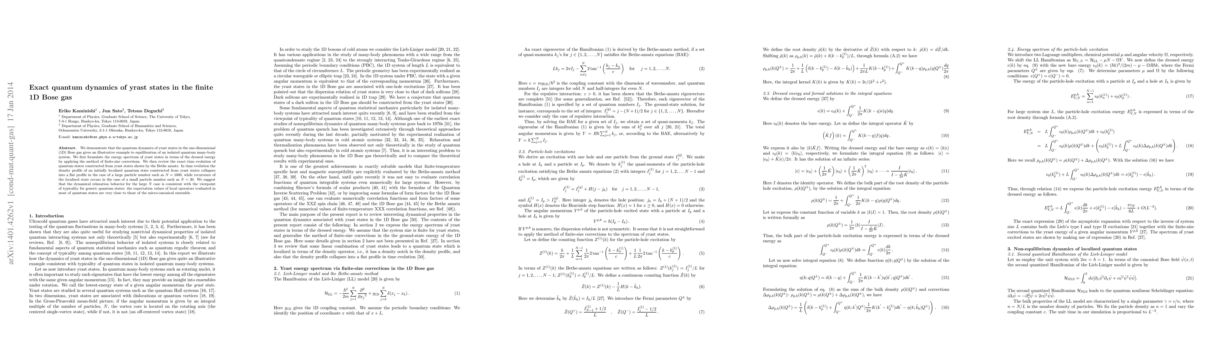 This paper investigates the exact quantum dynamics of yrast states in a 1D Bose gas, showing that large systems equilibrate while small systems exhibit recurrence. The study uses the Bethe ansatz to describe the time evolution and finds that large particle numbers lead to relaxation consistent with the typicality of quantum states.