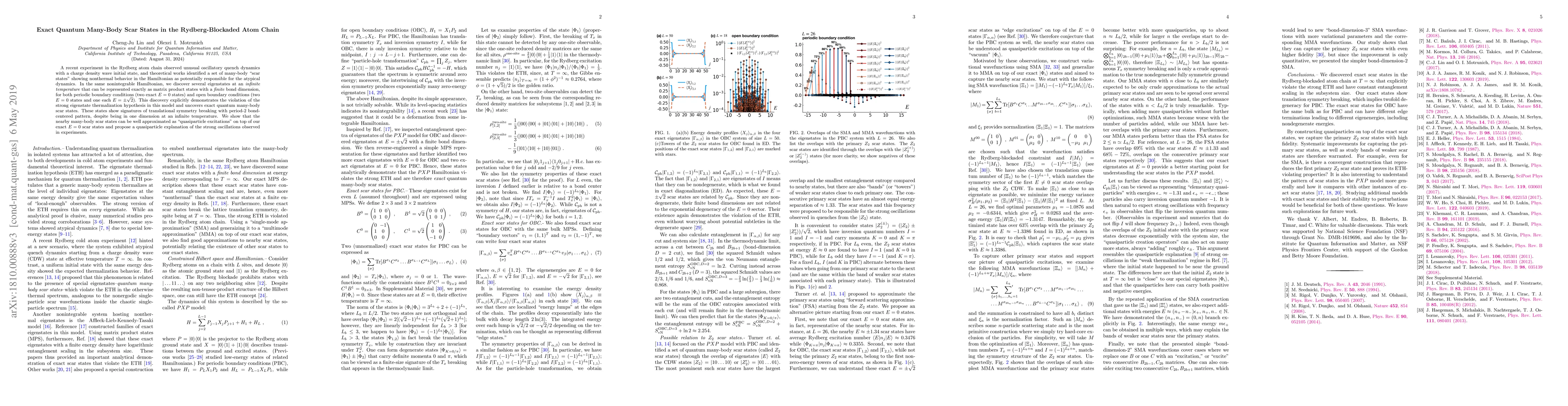 This paper identifies exact quantum many-body scar states in a Rydberg atom chain, demonstrating nonthermal behavior and violating the strong eigenstate thermalization hypothesis. The discovered scar states exhibit translational symmetry breaking and can be represented as matrix product states with finite bond dimension, providing a quasiparticle explanation for observed oscillatory quench dynamics.