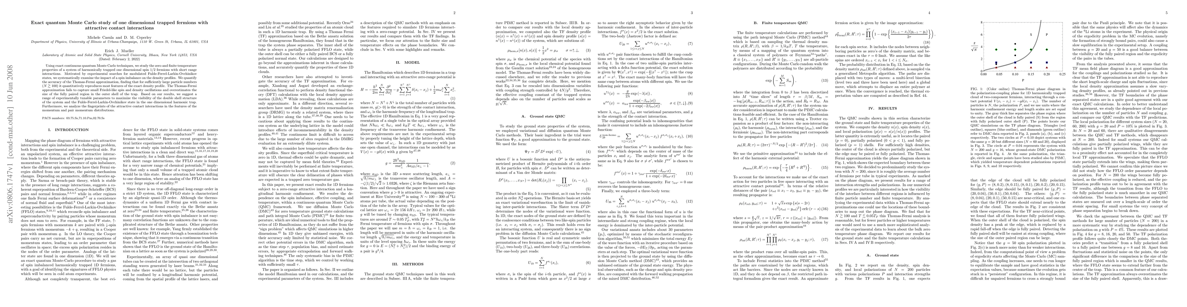 This research employs exact quantum Monte Carlo methods to analyze 1D trapped fermions with attractive interactions, finding that for large particle numbers (>100), the Thomas-Fermi approximation accurately predicts density profiles, but fails to capture small oscillations. The study suggests parameters to enhance visibility of the double shell structure and Fulde-Ferrel-Larkin-Ovchinikov state, also examining interaction fingerprints in momentum distributions.