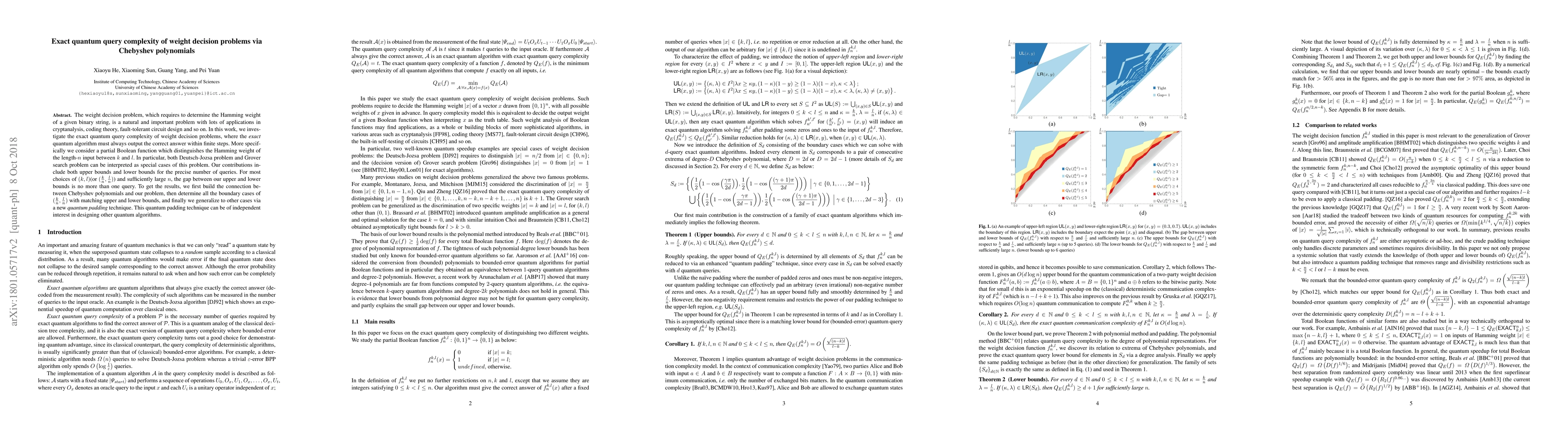 The weight decision problem, which requires to determine the Hamming weight of a given binary string, is a natural and important problem, with applications in cryptanalysis, coding theory, fault-tolerant circuit design and so on. In particular, both Deutsch-Jozsa problem and Grover search problem can be interpreted as special cases of weight decision problems. In this work, we investigate the exact quantum query complexity of weight decision problems, where the quantum algorithm must always output the correct answer. More specifically we consider a partial Boolean function which distinguishes whether the Hamming weight of the length-$n$ input is $k$ or it is $l$. Our contribution includes both upper bounds and lower bounds for the precise number of queries. Furthermore, for most choices of $(\frac{k}{n},\frac{l}{n})$ and sufficiently large $n$, the gap between our upper and lower bounds is no more than one. To get the results, we first build the connection between Chebyshev polynomials and our problem, then determine all the boundary cases of $(\frac{k}{n},\frac{l}{n})$ with matching upper and lower bounds, and finally we generalize to other cases via a new \emph{quantum padding} technique. This quantum padding technique can be of independent interest in designing other quantum algorithms.