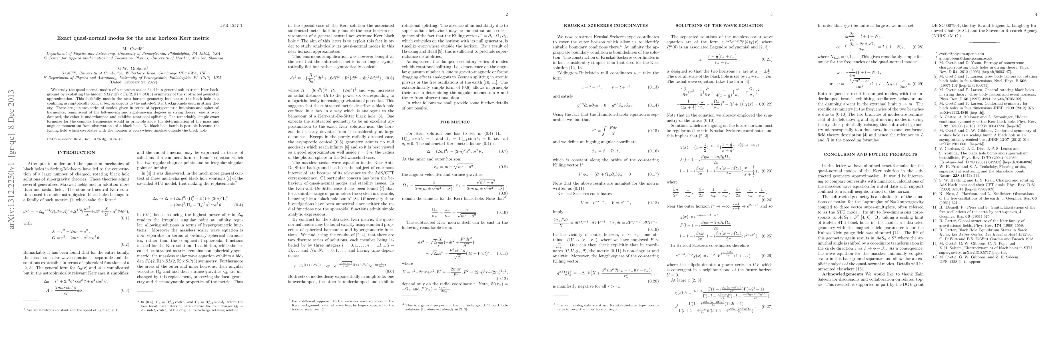 This paper finds exact solutions for quasi-normal modes of a scalar field in near-horizon Kerr spacetime, revealing two series of over- and underdamped modes with rotational splitting, and provides simple formulae for complex frequencies that could determine black hole mass and angular momentum.