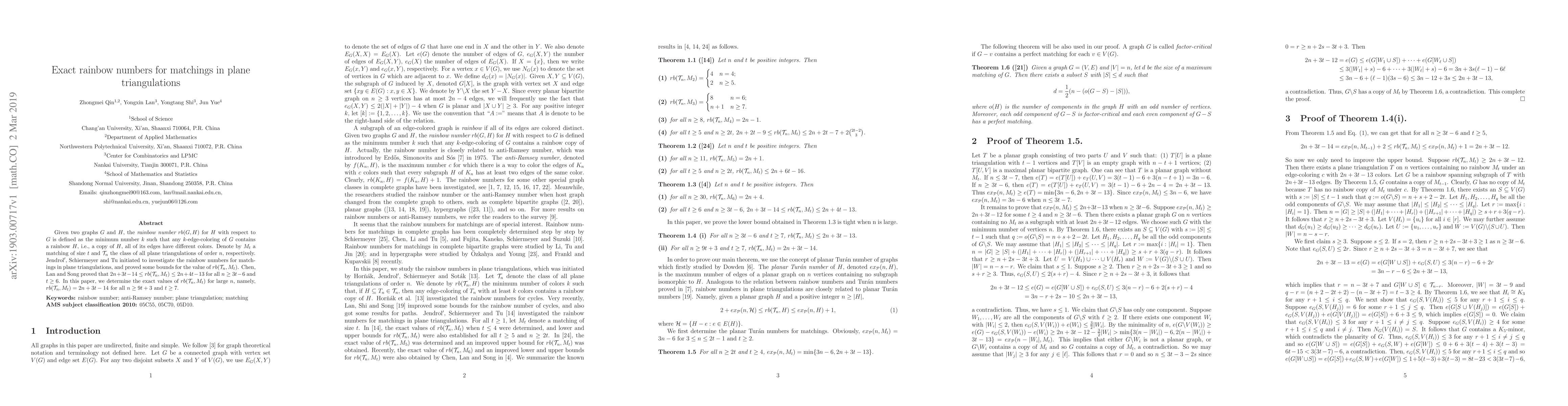 This paper determines the exact rainbow numbers for matchings in plane triangulations, finding a precise lower bound of 2n+3t-14 for large n and t >= 7, improving upon previous bounds.