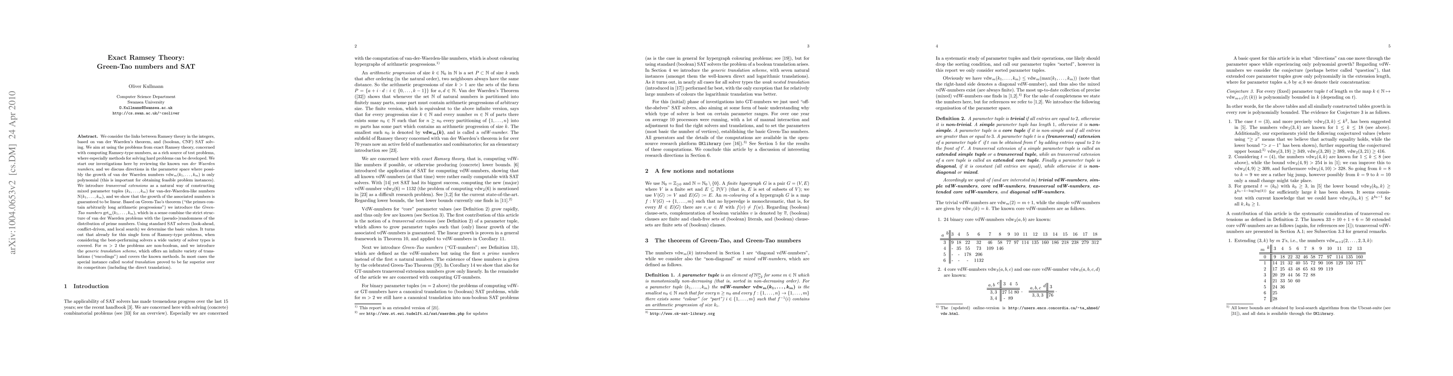 Researchers used Ramsey theory to create a new class of problems for SAT solving, called Green-Tao numbers, and found that state-of-the-art solvers can handle these problems efficiently.