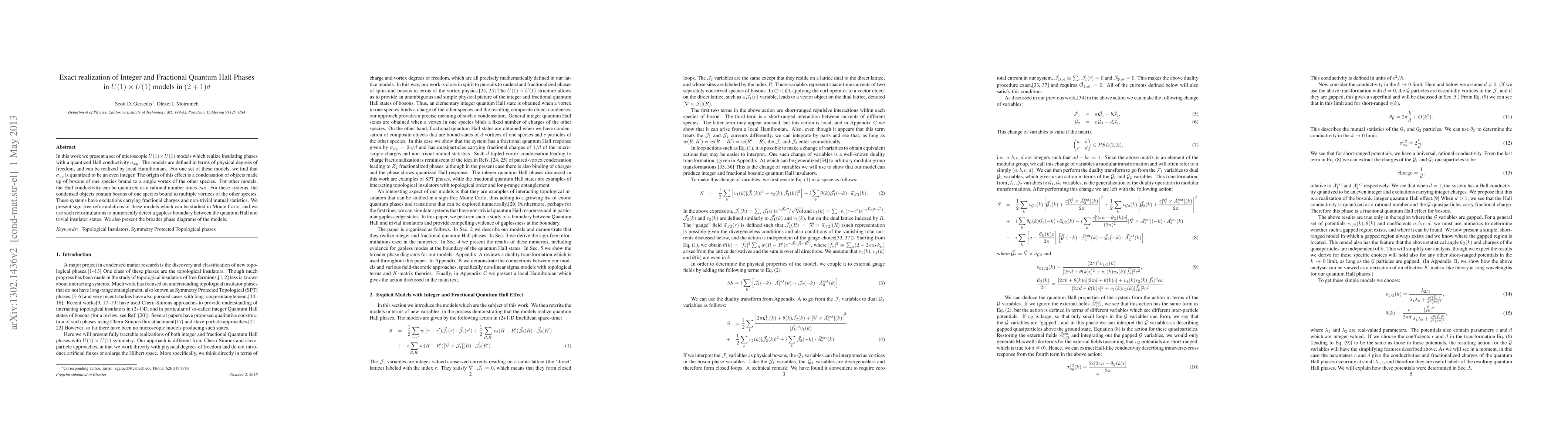 In this work we present a set of microscopic U(1)xU(1) models which realize insulating phases with a quantized Hall conductivity \sigma_{xy}. The models are defined in terms of physical degrees of freedom, and can be realized by local Hamiltonians. For one set of these models, we find that \sigma_{xy} is quantized to be an even integer. The origin of this effect is a condensation of objects made up of bosons of one species bound to a single vortex of the other species. For other models, the Hall conductivity can be quantized as a rational number times two. For these systems, the condensed objects contain bosons of one species bound to multiple vortices of the other species. These systems have excitations carrying fractional charges and non-trivial mutual statistics. We present sign-free reformulations of these models which can be studied in Monte Carlo, and we use such reformulations to numerically detect a gapless boundary between the quantum Hall and trivial insulator states. We also present the broader phase diagrams of the models.