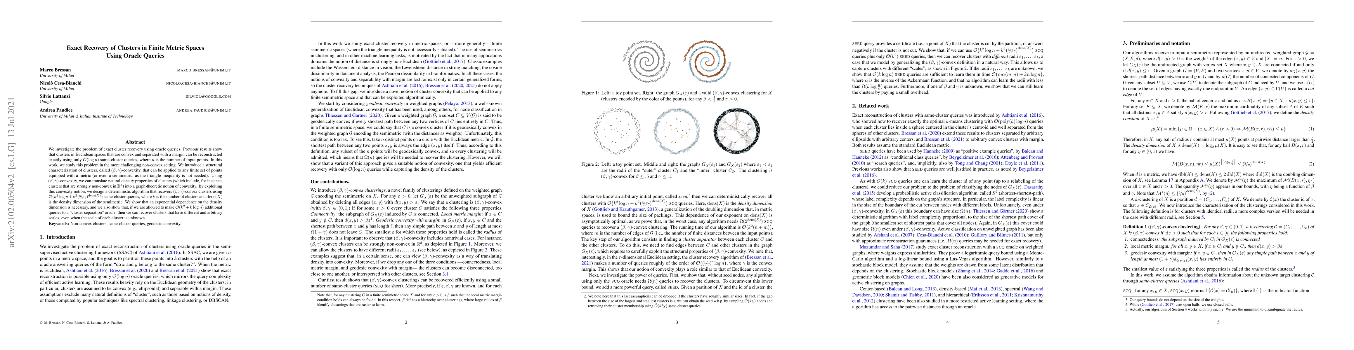 This paper explores exact cluster recovery in non-convex settings using oracle queries, introducing $(\beta,\gamma)$-convexity to generalize cluster properties. It presents a deterministic algorithm that reconstructs such clusters with a specified query complexity, proving the necessity of exponential dependence on density dimension.