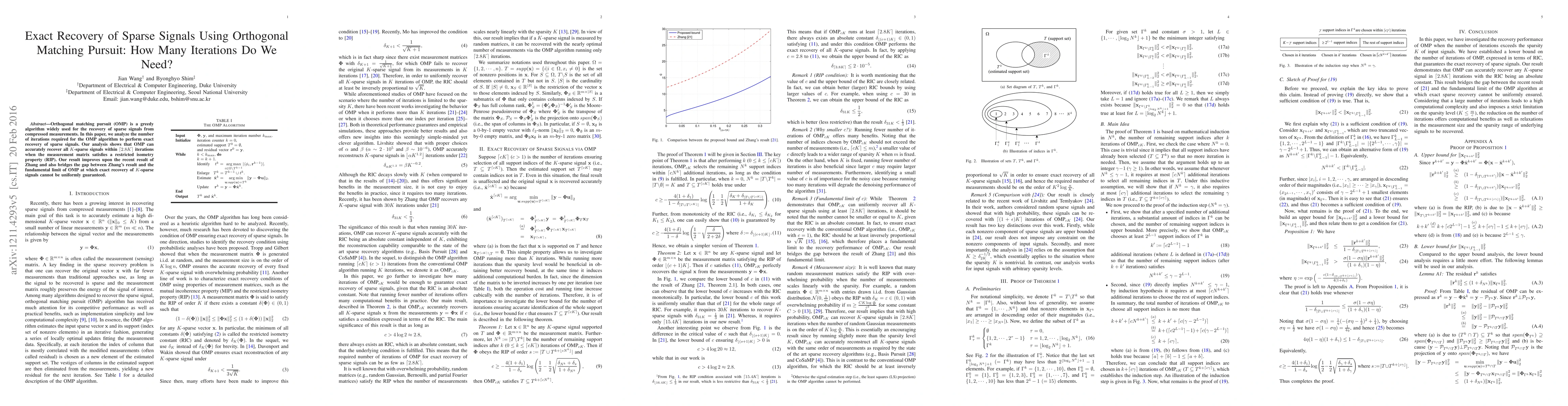 Orthogonal matching pursuit (OMP) is a greedy algorithm widely used for the recovery of sparse signals from compressed measurements. In this paper, we analyze the number of iterations required for the OMP algorithm to perform exact recovery of sparse signals. Our analysis shows that OMP can accurately recover all $K$-sparse signals within $\lceil 2.8 K \rceil$ iterations when the measurement matrix satisfies a restricted isometry property (RIP). Our result improves upon the recent result of Zhang and also bridges the gap between Zhang's result and the fundamental limit of OMP at which exact recovery of $K$-sparse signals cannot be uniformly guaranteed.