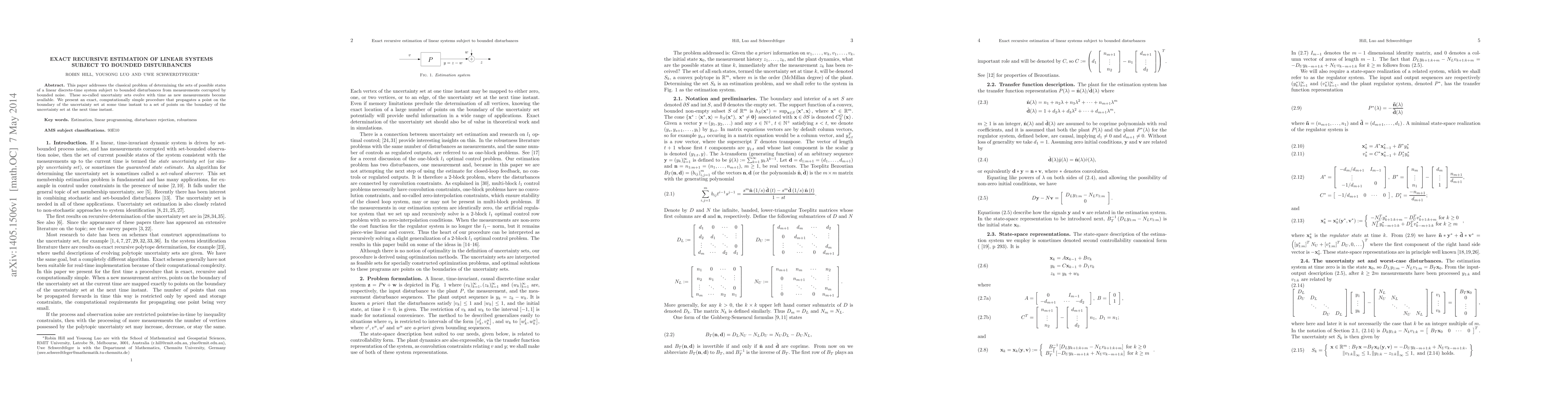 This paper presents a simple procedure for estimating the sets of possible states in linear systems with bounded disturbances, updating these estimates over time based on new measurements.