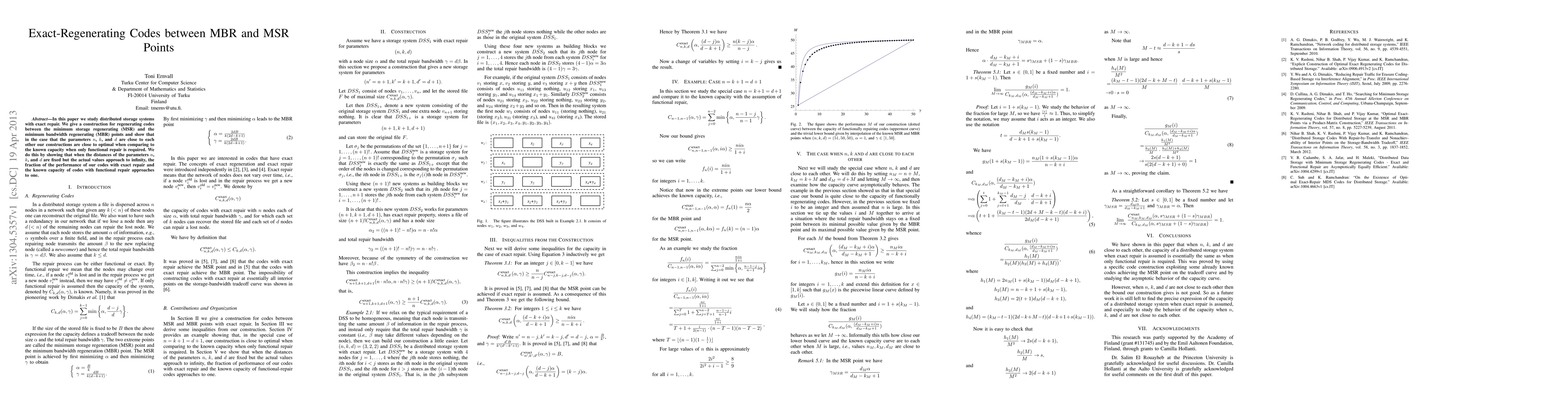 In this paper we study distributed storage systems with exact repair. We give a construction for regenerating codes between the minimum storage regenerating (MSR) and the minimum bandwidth regenerating (MBR) points and show that in the case that the parameters n, k, and d are close to each other our constructions are close to optimal when comparing to the known capacity when only functional repair is required. We do this by showing that when the distances of the parameters n, k, and d are fixed but the actual values approach to infinity, the fraction of the performance of our codes with exact repair and the known capacity of codes with functional repair approaches to one.