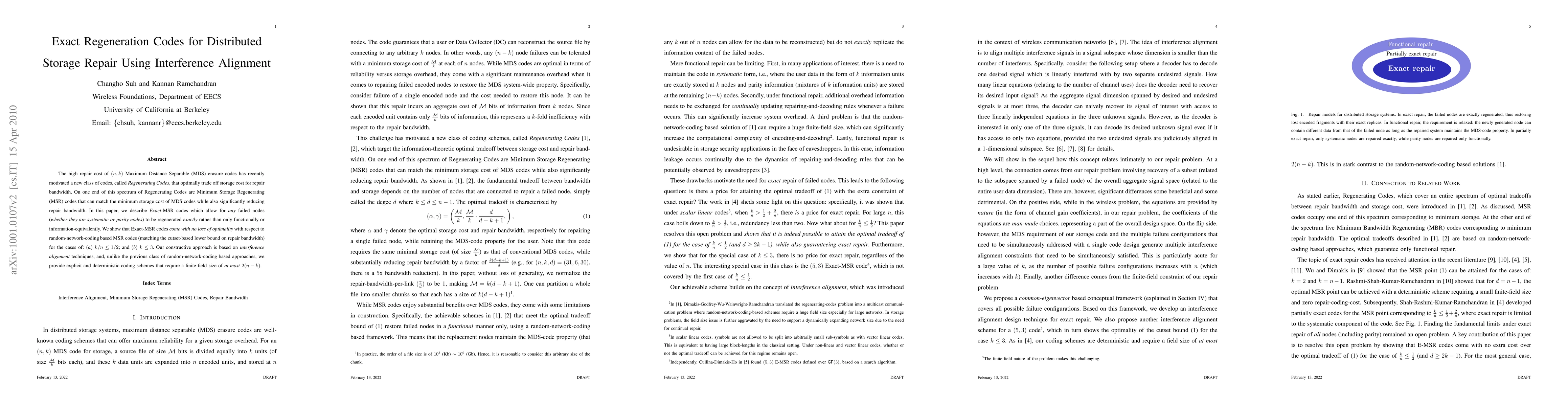 The paper describes Exact-MSR codes for distributed storage repair using interference alignment techniques, presenting a constructive approach that ensures exact repair of any failed nodes without loss of optimality for specific cases.