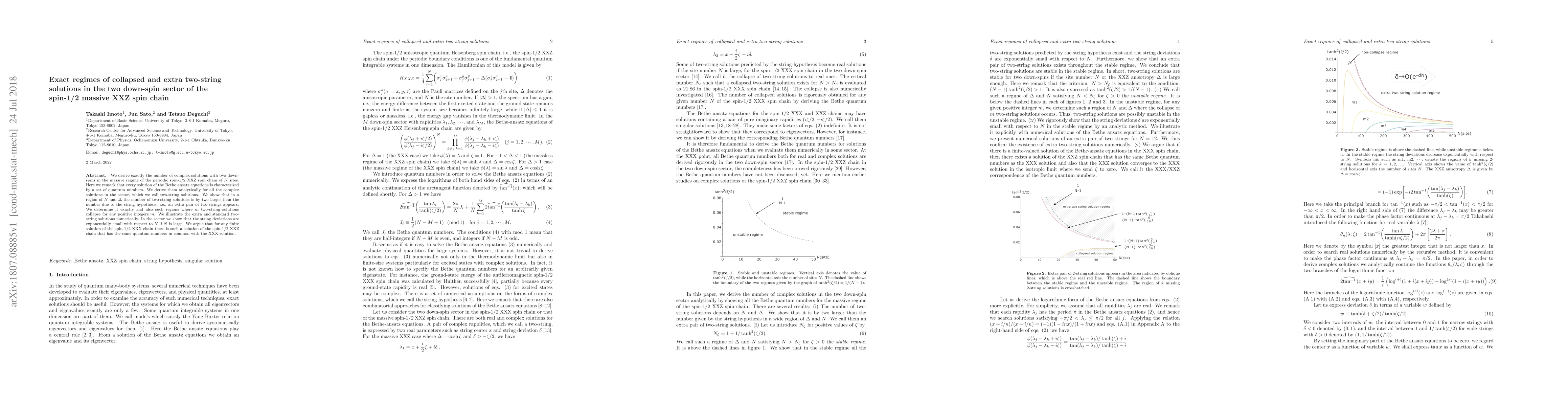 This paper analytically determines the exact number of complex solutions in the two-down-spin sector of the massive periodic spin-1/2 XXZ spin chain, identifying an extra pair of "two-string" solutions beyond the standard count. It also specifies regimes where multiple solutions collapse and demonstrates the exponentially small deviations from the string hypothesis.